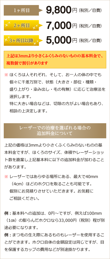 | こんな方におススメ | ・悪性が心配な場合 ・ほくろの大きさが1cm以上の場合 |