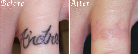※レーザー治療の場合、薄い青色(水色)や緑・黄色・赤色や色素が非常に深く入っている場合はレーザーの反応が弱いため、完全に除去することができません。