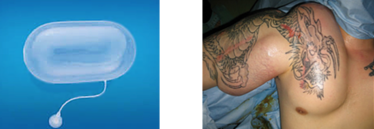 大きなタトゥーでも、できるだけ早期に切除したい場合、大きな刺青を切除するには皮膚が足りない場合、組織拡張器(ティシュエキスパンダー)を使います。